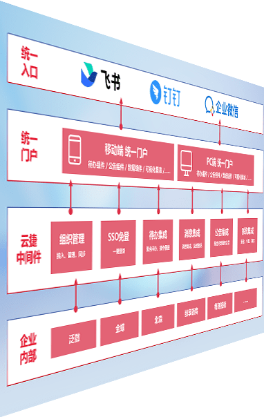 对协作平台提供支持服务,,支持企业应用与协作平台对接,,包含组织同步、、消息集成、、、待办集成等。。支持目前主流的协作平台:钉钉、、、、企微和飞书。。。